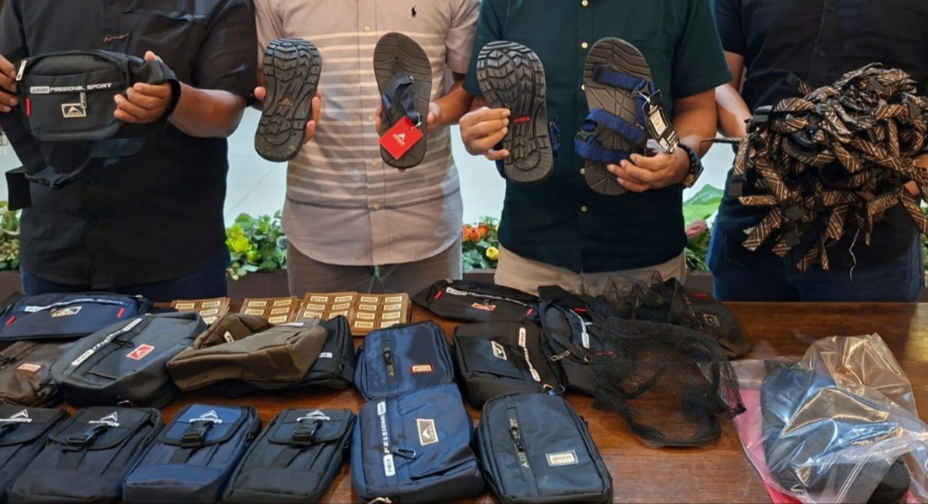 “Kami sita barang bukti berupa sandal dan tas palsu merek Eiger, terdiri atas 3.421 pasang sandal dan 2.326 buah tas,” jelas Feria.