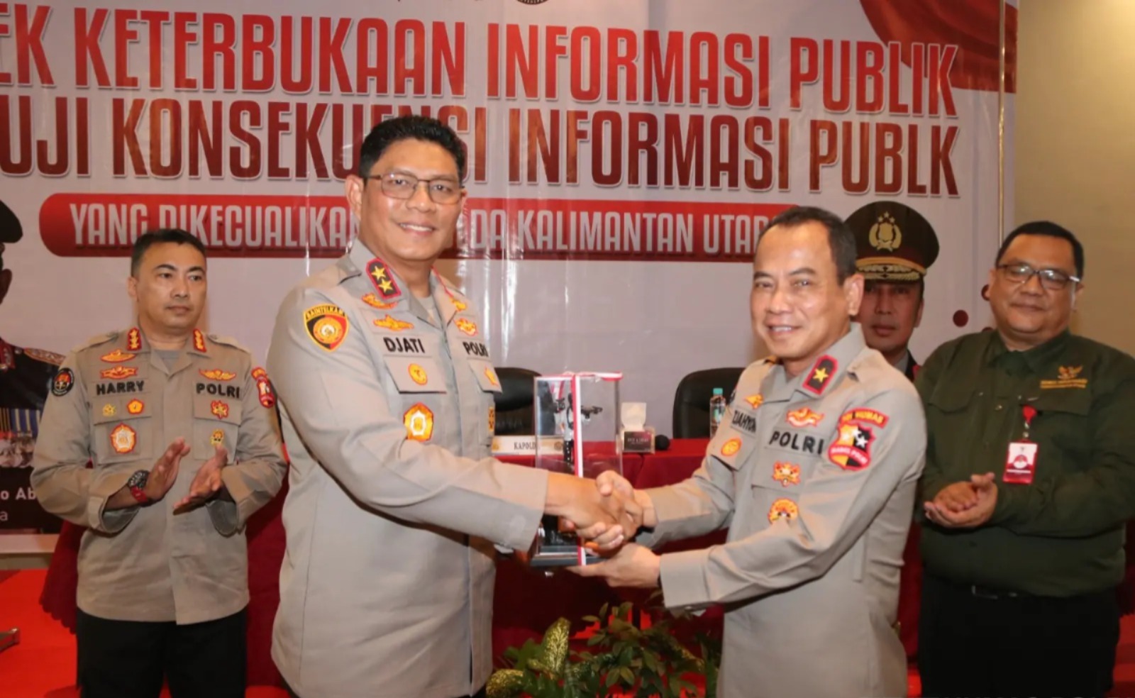 Dalam kegiatan tersebut, Divhumas Polri menyerahkan cinderamata kepada Kapolda Kaltara dan perwakilan Komisi Informasi Publik, serta menggelar sesi foto bersama sebagai simbol komitmen memperkuat transparansi dan akuntabilitas publik.