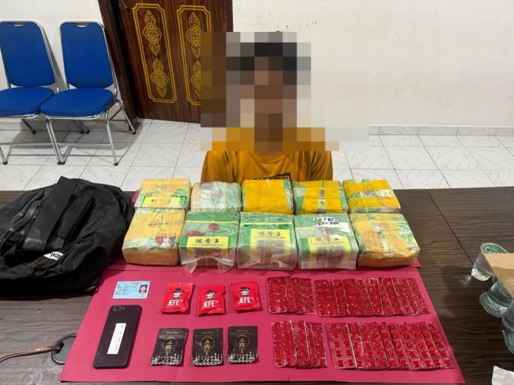 Dalam operasi tersebut, polisi meringkus seorang pelaku berinisial SE (29) dan menyita 10 kilogram sabu merek Guanyinwang, 28 strip pil Happy Five, serta enam bungkus ganja kering dari berbagai merek. Seluruh barang haram itu ditemukan di dalam satu tas ransel hitam milik pelaku.