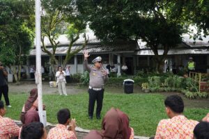 Di kesempatan itu, Kasat Lantas menyampaikan himbauan dan penyuluhan kepada siswa-siswi untuk tertib berlalulintas sehingga terciptanya Kamseltibcar Lantas yang aman dan nyaman.