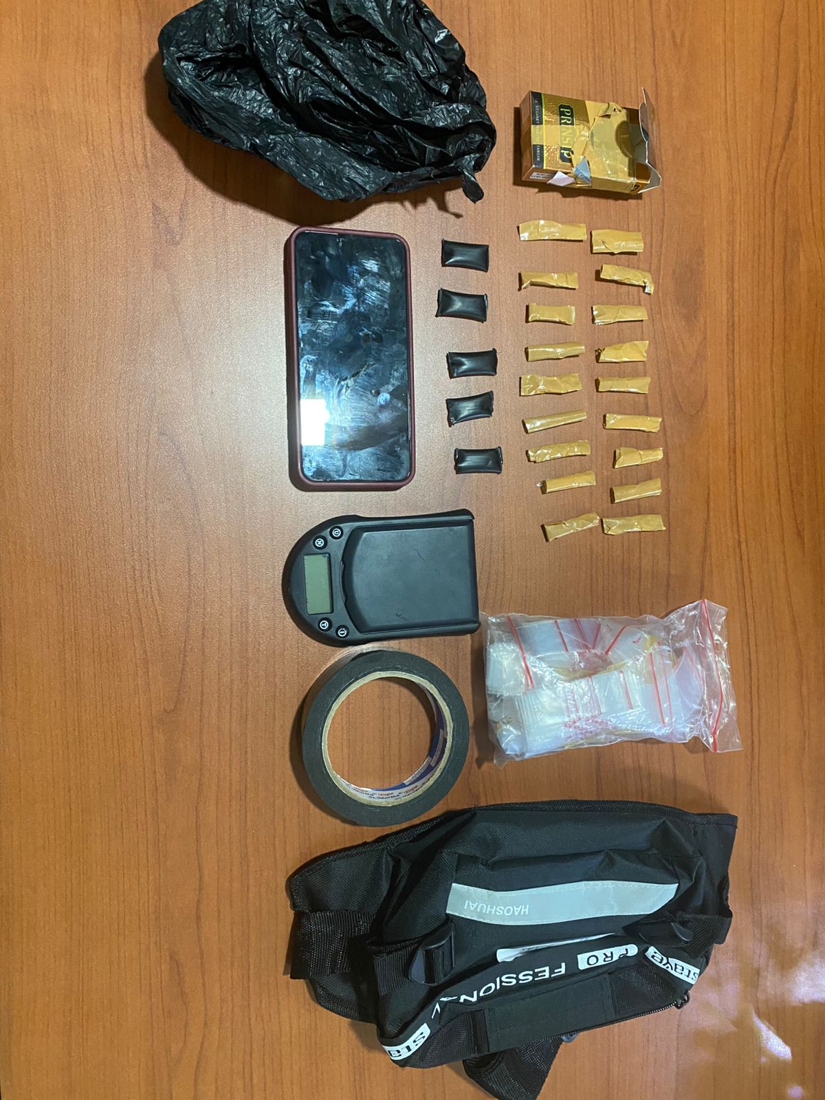 Selain itu, di rumah pelaku ditemukan barang bukti tambahan berupa tas selempang hitam berisi plastik klip, double tape, timbangan digital, dan STNK sepeda motor atas nama Amin Budiansah.