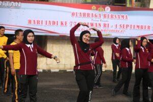 Bharindo Garut,– Dalam rangka memperingati Hari Ulang Tahun (HUT) Polisi Wanita (Polwan) ke-77 Tahun 2025, Polres Garut menggelar kegiatan olahraga bersama yang berlangsung penuh kebersamaan dan semangat kekeluargaan, Jumat (22/8/2025).