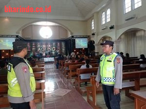 Hal tersebut terlihat dari kesiagaan personel dalam mengamankan kegiatan Kebaktian Minggu di sejumlah gereja di wilayah hukum Polsek Indramayu, Minggu (22/3/2026). Pengamanan dilakukan di pintu masuk hingga area sekitar gereja guna memastikan jemaat dapat beribadah dengan aman dan nyaman.