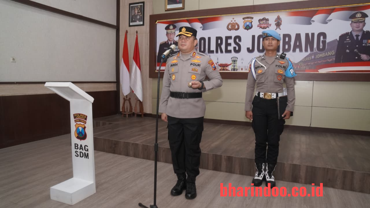 bharindo.co.id Jombang,– Polres Jombang menggelar upacara serah terima jabatan (sertijab) Wakapolres, Kabagops, Kasat Lantas serta pengukuhan jabatan Kasiwas, Kamis (15/1/2026) pagi. Kegiatan berlangsung di Ruang Jombang Command Center Mapolres Jombang.