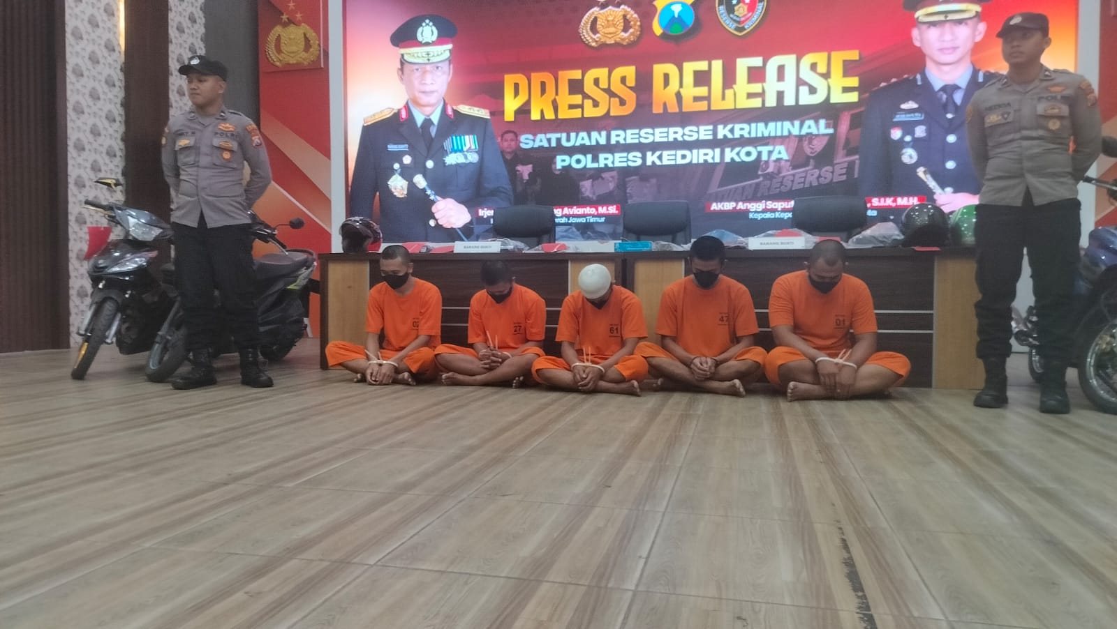 Bharinbdo Kediri, 24 Juli 2025 – Polres Kediri Kota mengungkap kasus pengeroyokan yang melibatkan lima remaja usai acara Pencak Dor. Hal ini disampaikan oleh Kasatreskrim Polres Kediri Kota, AKP Cpito Dwi Leksana, dalam konferensi pers yang digelar di Aula Rupatama Wicaksana Laghawa.