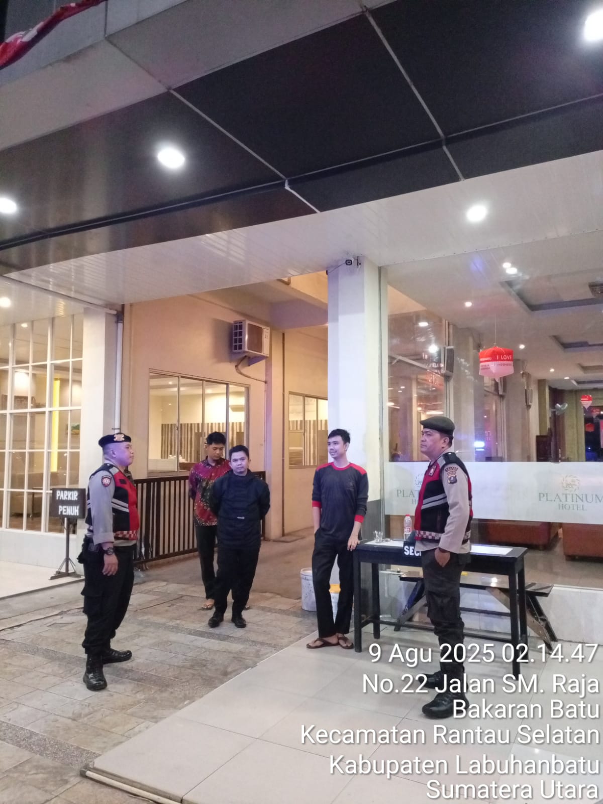 Bharindo, Labuhanbatu,– Personel Sat Samapta Polres Labuhanbatu melaksanakan Patroli Blue Light di sejumlah titik yang berpotensi terjadinya pelanggaran, tindak pidana 3C (Curat, Curas, Curanmor), dan peredaran narkotika, sekaligus mengantisipasi gangguan kamtibmas di wilayah hukum Polres Labuhanbatu Provinsi Sumatera utara (9/8/2025).