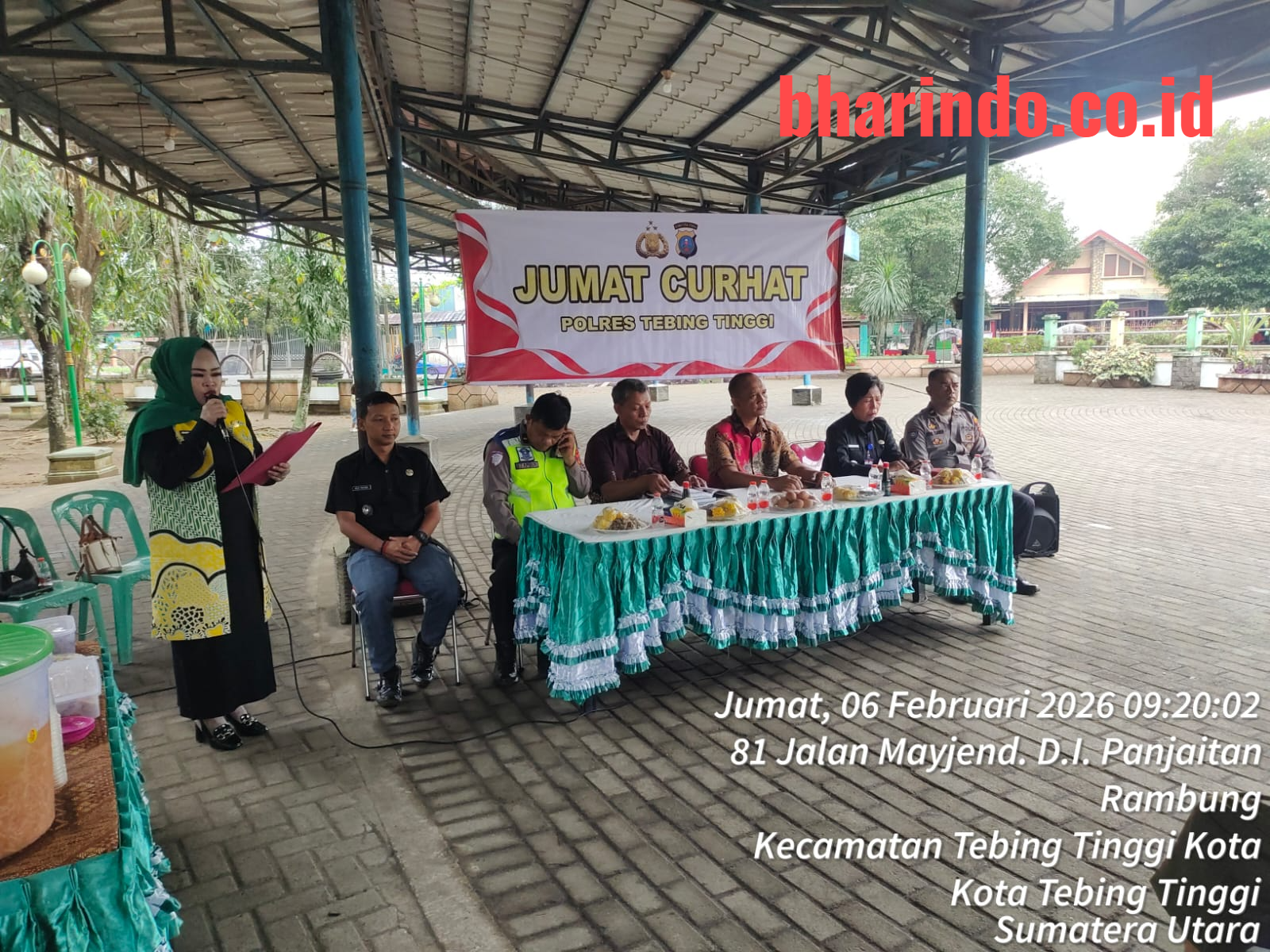 bharindo.co.id Tebing Tinggi,- Kapolres Tebing Tinggi AKBP Rina Frillya, SIK diwakili Kasat Narkoba Polres Tebing Tinggi AKP Jimmy R Sitorus didampingi personel Polres Tebing Tinggi melaksanakan kegiatan Jumat Curhat di Taman Kota Jalan D.I.Panjaitan Kelurahan Rambung Kecamatan Tebing Tinggi Kota, Kota Tebing Tinggi, Jumat (6/2/2025).