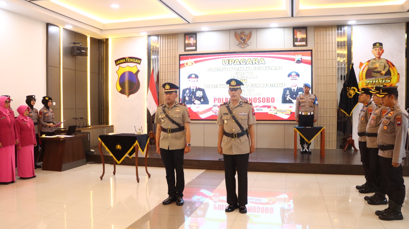 BHARINDO WONOSOBO,– Polres Wonosobo menggelar upacara pelantikan jabatan Kapolsek Kaliwiro dan Kapolsek Mojotengah pada Rabu (13/8/2025). Kegiatan ini merupakan tindak lanjut dari Surat Telegram Kapolda Jateng mengenai pemberhentian dan pengangkatan jabatan di lingkungan Polda Jateng.