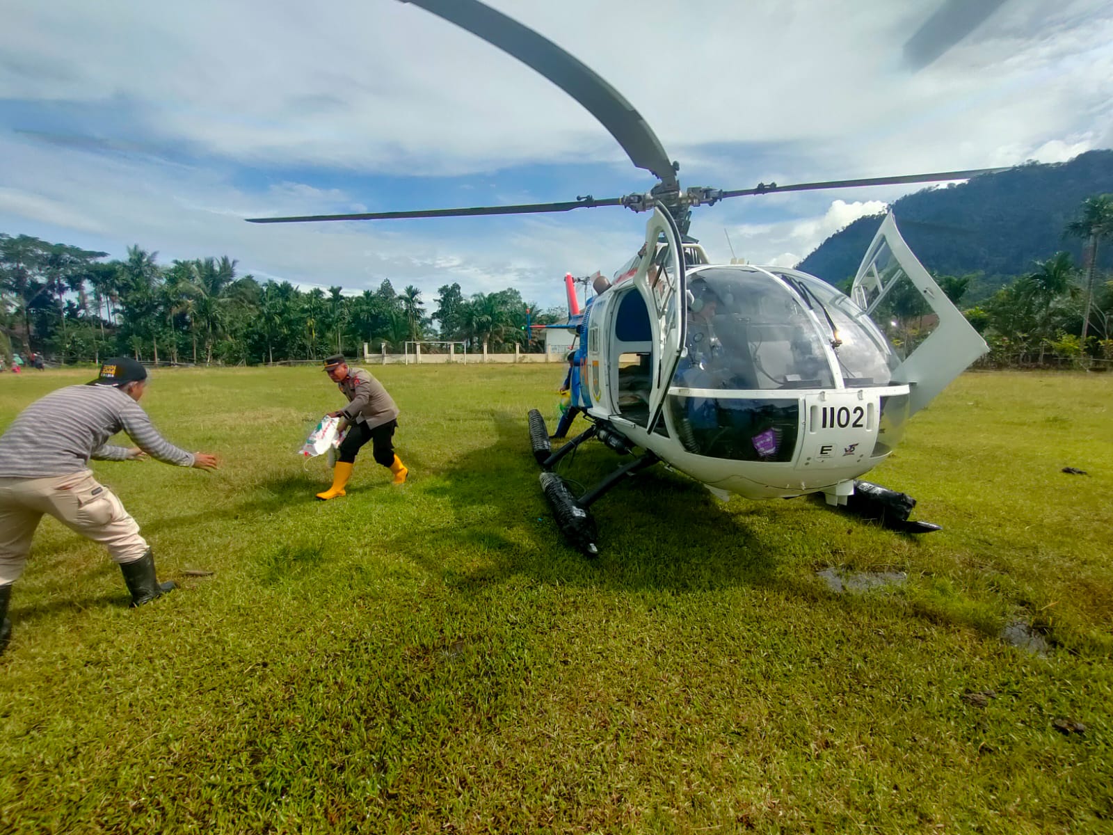 bharindo.co.id Aceh,— Kepolisian Negara Republik Indonesia (Polri) kembali menunjukkan komitmennya dalam membantu masyarakat yang terdampak bencana alam. Melalui dukungan sarana udara, Polri menyalurkan bantuan kemanusiaan ke wilayah Kabupaten Aceh Tamiang dan Kabupaten Aceh Timur menggunakan helikopter NBO105/P-1113.