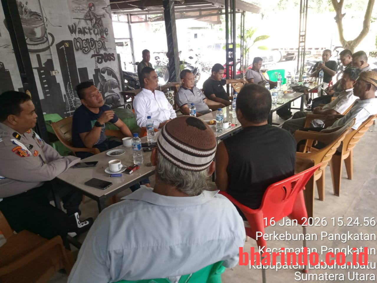 bharindo.co.id Labuhanbatu,- Kapolsek Bilah Hilir AKP Armen Faisal, menggelar Giat Sambang untuk mendengar langsung dari masyarakat tentang keluhan dan keresahan masyarakat terhadap peredaran narkoba di Desa Kampung Padang di warung kopi Rijal Dusun Sidodadi A Desa Kampung Padang Kecamatan Pangkalan Kabupaten Labuhanbatu Provinsi Sumatera utara, (17/1/2026).