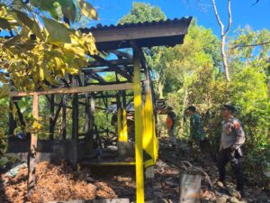 Kapolsek Cikelet Iptu Aktas Siregar mengatakan pihaknya melaksanakan pengecekan Tempat Kejadian Perkara (TKP) kebakaran rumah panggung yang terjadi pada Jumat malam (15/8/2025) sekitar pukul 20.30 WIB.