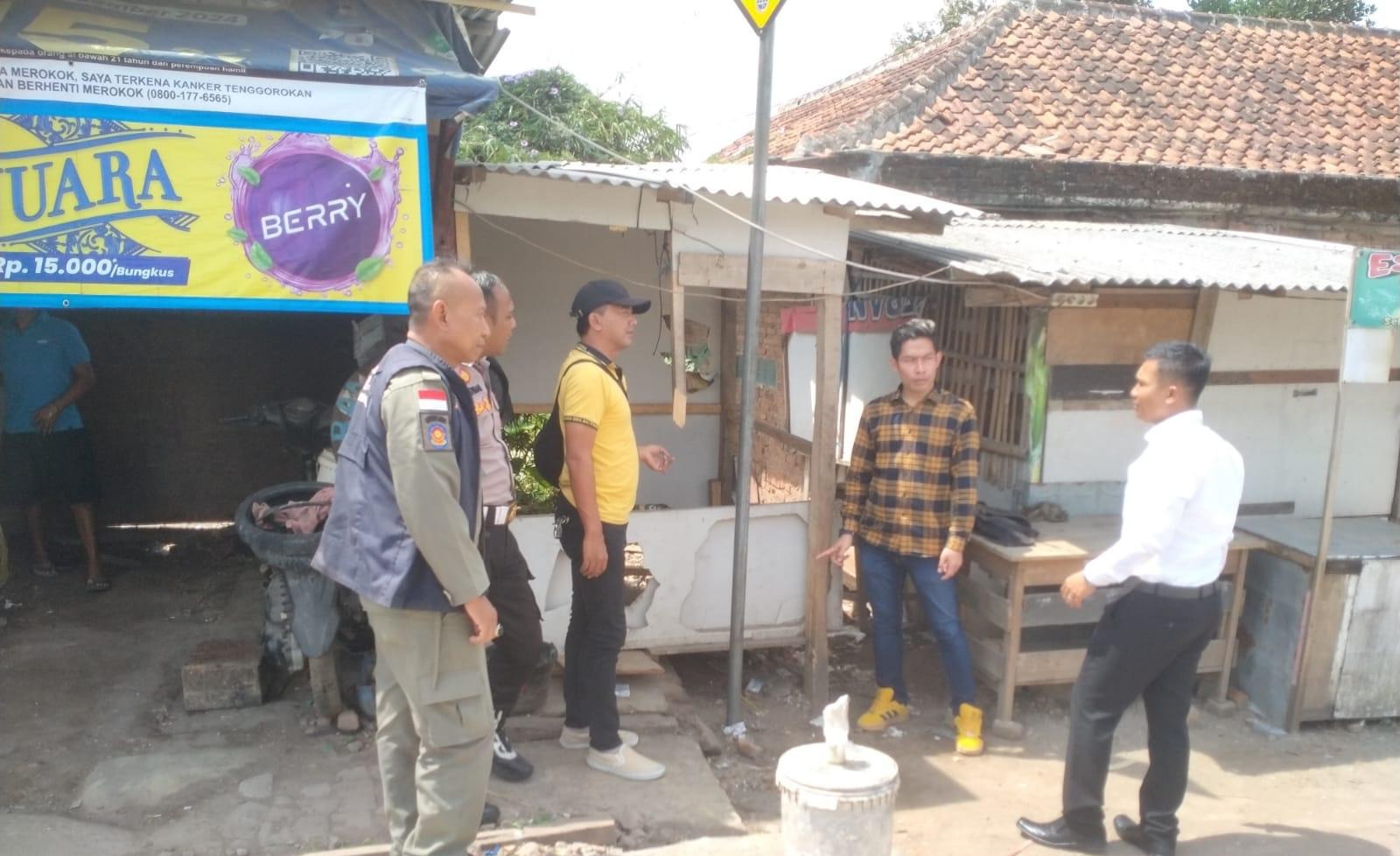 Petugas membongkar kios-kios yang diduga digunakan sebagai tempat peredaran obat-obatan ilegal. Penertiban ini dilakukan secara persuasif dan disaksikan oleh warga sekitar.