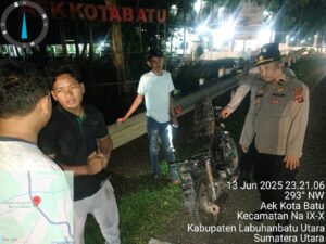 Bharindo, Labuhanbatu – Guna menjaga keamanan dan ketertiban masyarakat, Polsek NA IX-X melaksanakan kegiatan Patroli Blue Light , Patroli dilaksanakan mulai pukul 23.00 WIB hingga selesai, menyasar wilayah Kelurahan Aek Kota Batu Kecamatan NA IX-X Kabupaten Labuhanbatu Utara Provinsi Sumatera Utara , pada Jumat malam (13/6/2025).