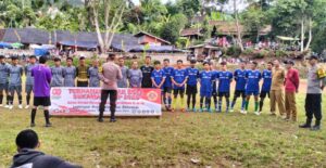 Bharindo Garut,- Personel Polsek Talegong melaksanakan kegiatan pengamanan pertandingan sepak bola di Lapangan Sepak Bola Desa Sukamaju, Kecamatan Talegong, Kabupaten Garut.
