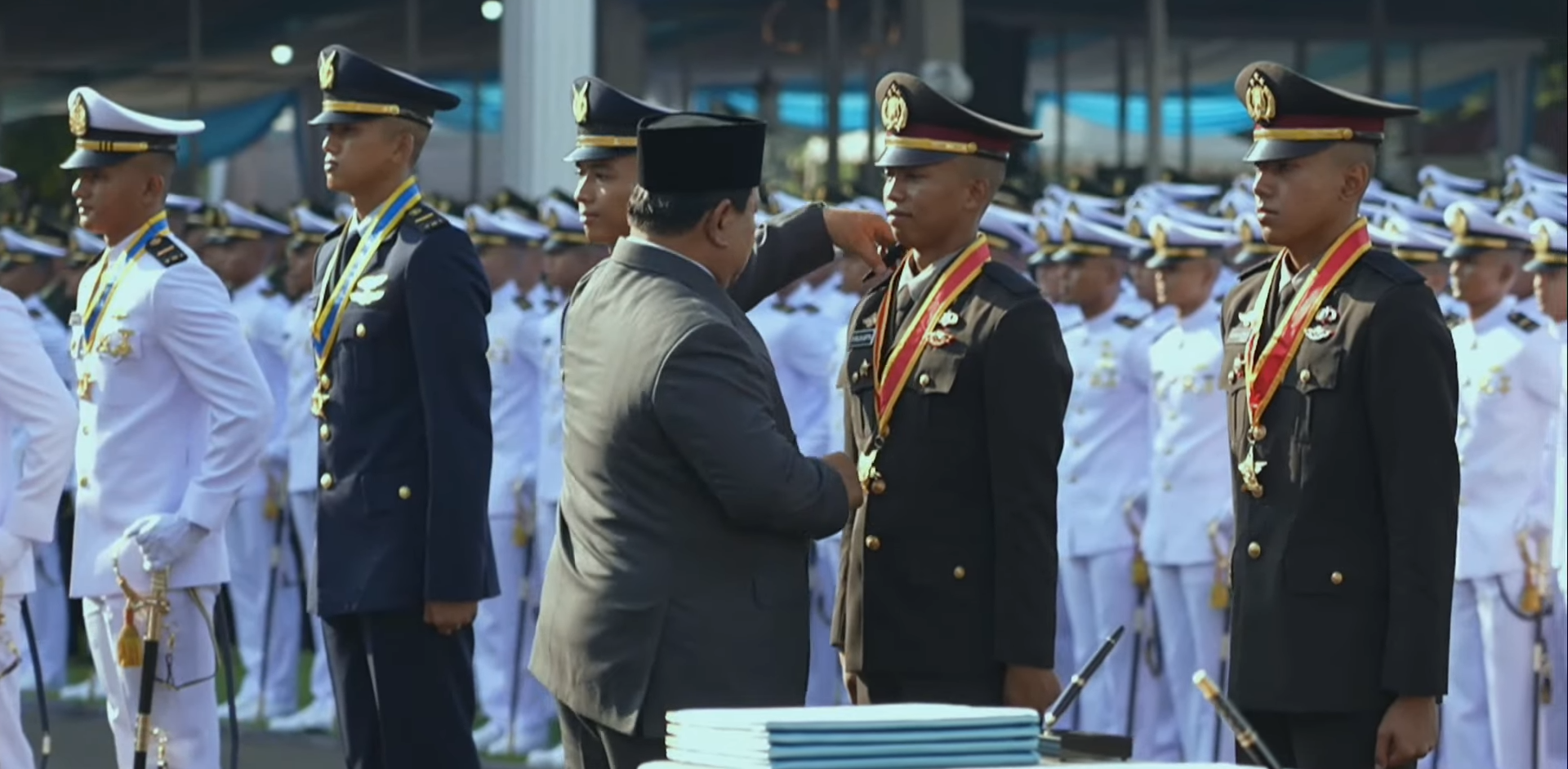Bahwa saya akan memenuhi kewajiban perwira dengan sebaik-baiknya terhadap Bangsa Indonesia dan Negara Kesatuan Republik Indonesia yang berdasarkan Pancasila dan Undang-Undang Dasar 1945, ujar Prabowo yang kemudian diikuti oleh ribuan taruna-taruni.