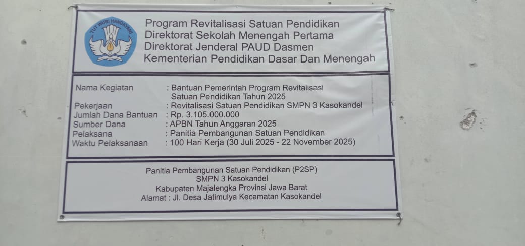 Bharindo Majalengka, – Kegiatan Revitalisasi pembangunan yang dikerjakan oleh SMPN 3 Kasokandel Kecamatan Kasokandel Kabupaten Majalengka, dipersoalkan beberapa pihak