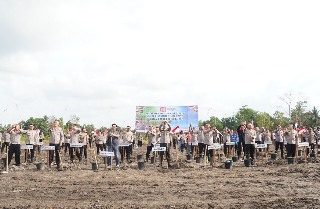 “Hari ini, kita melakukan program dalam rangka HUT Kemerdekaan ke 80 RI dengan menanam sejuta pohon di Negeri Serumpun Sebalai, serentak Polda dan Polres yang ada di Bangka Belitung,” Irjen Pol. Hendro Pandowo, M.Si