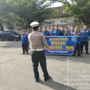 Bharindo, Labuhanbatu — Sat Lantas Polres Labuhanbatu melaksanakan kegiatan sosialisasi tertib berlalu lintas kepada anggota Satpol PP dan Damkar yang berlangsung di Padang Matingi, Kecamatan Rantau Utara Kabupaten Labuhanbatu Provinsi Sumatera utara (16/7/2025).