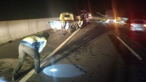 bharindo.co.id Tebing Tinggi,- Sat Lantas Polres Tebing Tinggi melakukan evakuasi terhadap korban kecelakaan lalu lintas (laka lantas) yang terjadi pada Jumat malam (21/11/2025) pukul 22.30 WIB di Jalan Tol Tebing Tinggi – Sinaksak tepatnya di Km 93 + 600 Desa Bandar Bejambu Kec Tebing Tinggi Kab Sergai.
