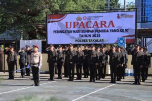 bharindo.co.id Takalar,- Lapangan Apel Polres Takalar menjadi saksi khidmatnya pelaksanaan Upacara Bendera Peringatan Hari Sumpah Pemuda ke-97 Tahun 2025, pada Selasa 28/10/2025) pukul 07.30 Wita. Upacara tahun ini mengusung tema “Pemuda Pemudi Bergerak, Indonesia Bersatu”, sebagai refleksi semangat kebangsaan dan persatuan generasi muda di tengah tantangan zaman.