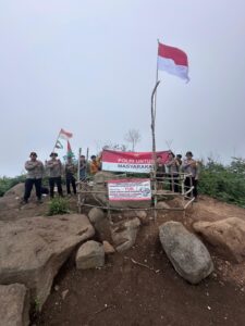 Bharindo Garut – Dalam rangka memperingati Hari Kemerdekaan Republik Indonesia ke-80, jajaran Polsek Kadungora Polres Garut melaksanakan pengibaran bendera Merah Putih di puncak Gunung Haruman, Desa Harumansari, Kecamatan Kadungora, Rabu (13/8/2025).