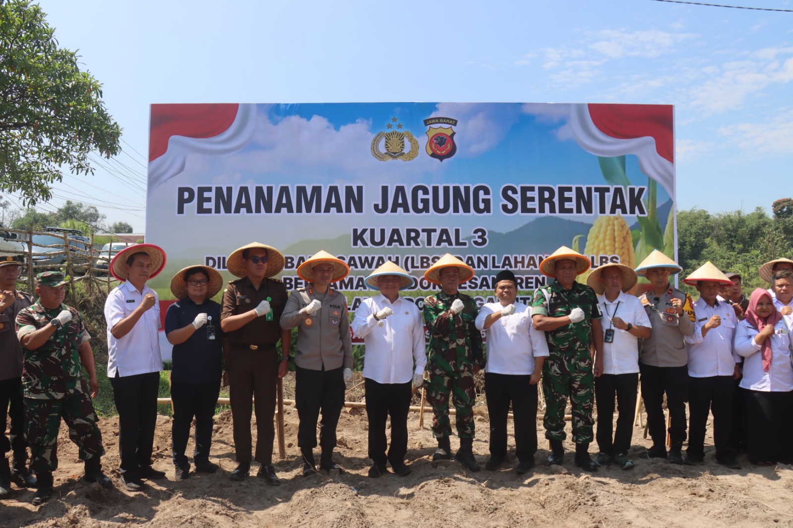 Bharindo Garut,– Dalam rangka mendukung program Swasembada Pangan Nasional Tahun 2025, Polres Garut bersama unsur Forkopimda Kabupaten Garut, tokoh masyarakat, dan kalangan pesantren melaksanakan kegiatan Penanaman Jagung Serentak yang dipusatkan di Pondok Pesantren Tarbiyatul Aulad, Kampung Tambak Baya, Desa Dano, Kecamatan Leles, Kabupaten Garut, pada Rabu (06/08/2025).