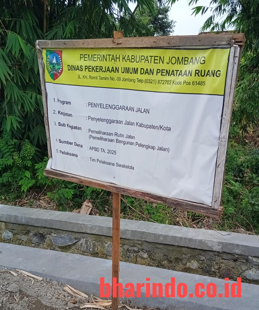 Seperti proyek yang berada di beberapa titik, diantaranya: Tembok Penahan Jalan ruas Desa Sepanyul – Desa Krembangan (Kecamatan Gudo), TPJ ruas Desa Pulorejo – Desa Pulogedang (Kecamatan Tembelang), TPJ ruas Desa Bedahlawak – Desa Pulogedang (Kecamatan Tembelang) semuanya tidak mencantumkan besaran anggaran serta volumenya.