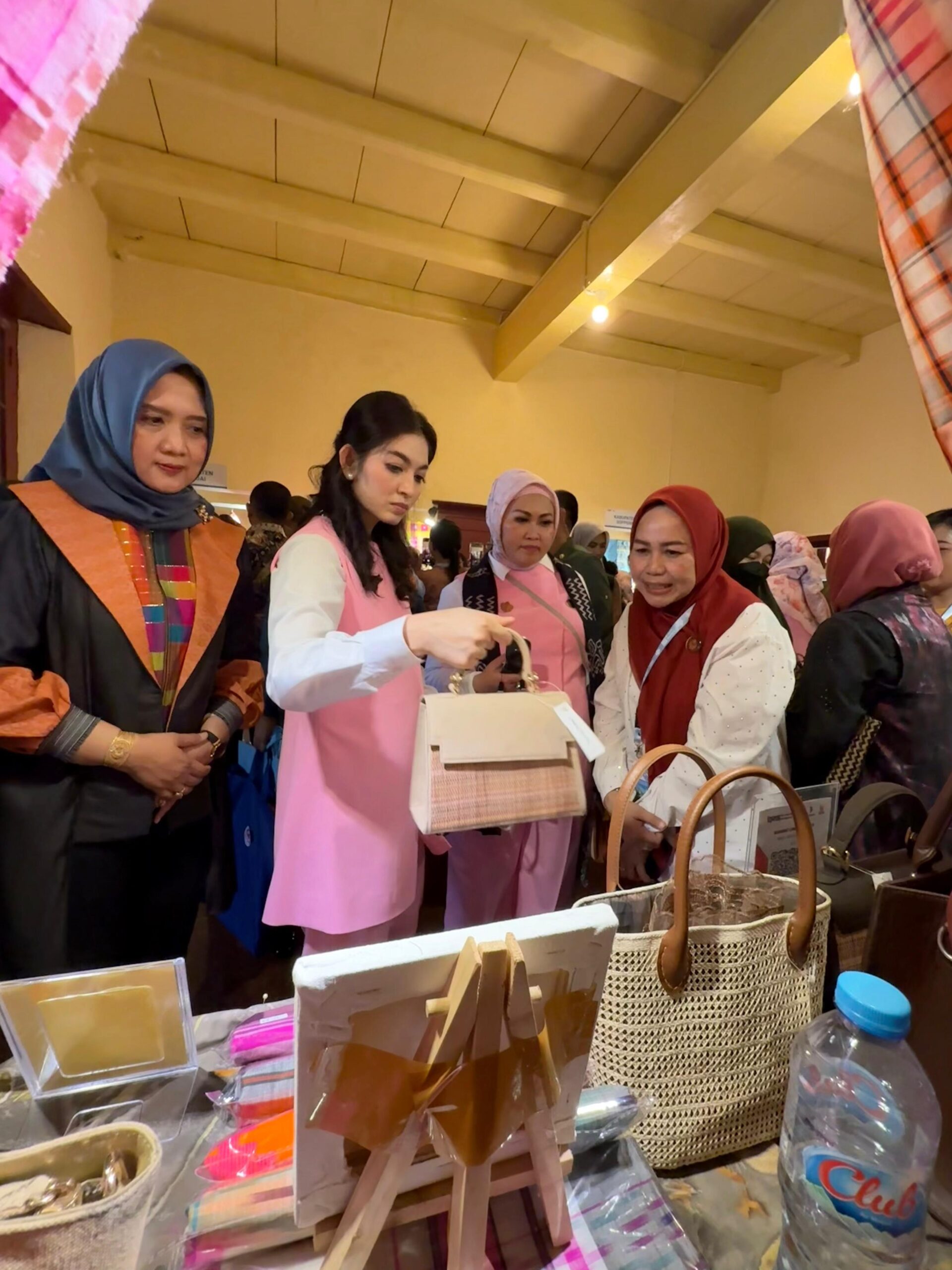 Bharindo Takalar,- Tas kerajinan khas Kabupaten Takalar dengan brand Anging Mamiri yang berasal dari Desa Sawakong berhasil menarik perhatian Ibu Selvi Gibran Rakabuming raka istri Wakil Presiden RI sekaligus Pembina Solidaritas Perempuan untuk Indonesia Kabinet Merah Putih (Seruni), saat menghadiri kegiatan Warna Budaya: Mewarnai Nusantara dengan Budaya” di kawasan bersejarah Benteng Fort Rotterdam, Makassar 22 Mei 2025.