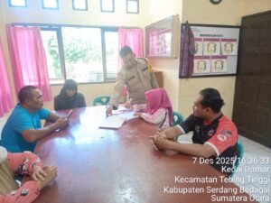 bharindo.co.id Tebing Tinggi,- Personel SPKT bersama personel Reskrim dan Bhabinkamtibmas Polsek Padang Hulu Polres Tebing Tinggi mempertemukan kedua belah pihak dalam kasus pencurian yang diselesaikan melalui mediasi/problem solving pada Minggu (7/12/2025), bertempat di Mapolsek Padang Hulu.