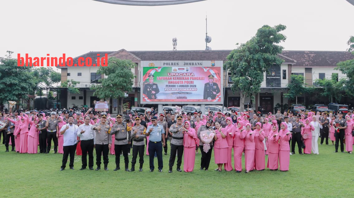 bharindo.co.id Jombang,– Tradisi siraman air kembang mewarnai upacara kenaikan pangkat 88 personel Polres Jombang periode 1 Januari 2026. Tradisi tersebut menjadi simbol rasa syukur atas pencapaian yang diraih sekaligus wujud komitmen personel untuk terus meningkatkan profesionalisme dalam pelaksanaan tugas kepolisian.