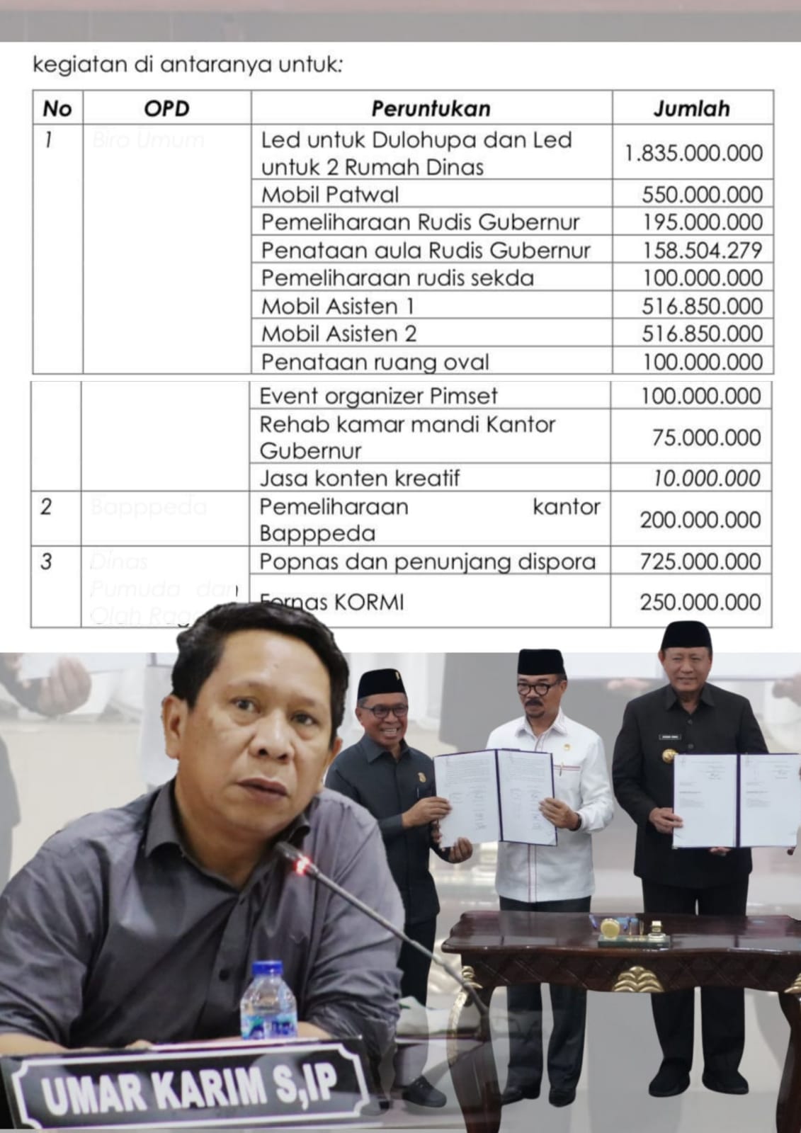 Namun, faktanya justru jauh dari harapan. Umar mengungkapkan, sekitar kurang lebihnya Rp5 miliar dari anggran hasil efisiensi justru digeser untuk belanja operasional pemeritah, yang menurutnya tidak memiliki relevansi langsung dengan kepentingan masyarakat.