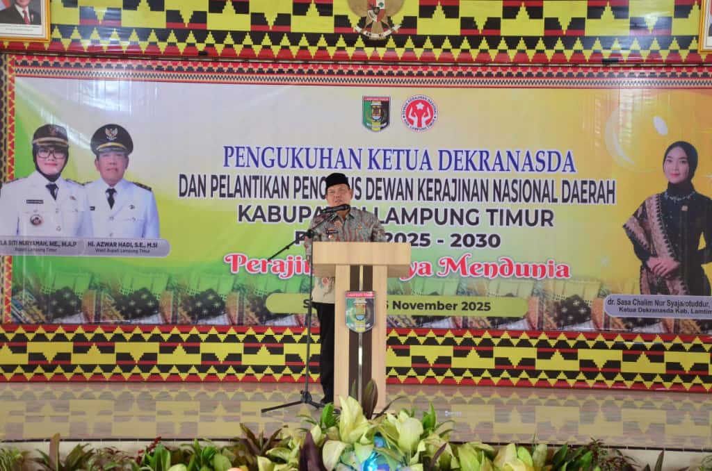 Bharindo.co.id Lampung Timur,- Wakil Bupati Lampung Timur, Azwar Hadi, melantik pengurus Dewan Kerajinan Nasional Daerah (Dekranasda) Kabupaten Lampung Timur dalam acara yang berlangsung di Aula Rumah Dinas Bupati Lampung Timur, Kamis (6/11/2025).