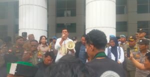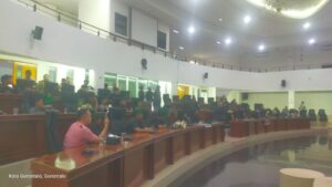 Wakil Ketua DPRD Provinsi Gorontalo, Sulyanto Pateda, menerima langsung perwakilan massa aksi. Didampingi Anggota lainnya diantaranya Abdul Ghalib Lahidjun, Wahyudin Moridu, Yeyen S. Sidiki, dan Femmy Kristina Udoki.