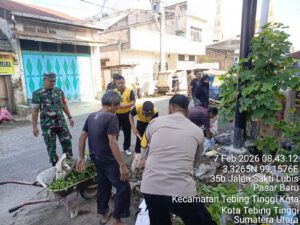 bharindo.co.id Tebing Tinggi,- Wujud kepedulian nyata terhadap lingkungan, Polsek Padang Hulu Polres Tebing Tinggi dipimpin Kapolsek Padang Hulu AKP Rudi Asman, SH menggelar aksi korve atau gotong royong bersih-bersih sampah di Jalan Sakti Lubis dan Mako Polsek Padang Hulu, Sabtu (7/2/2026).