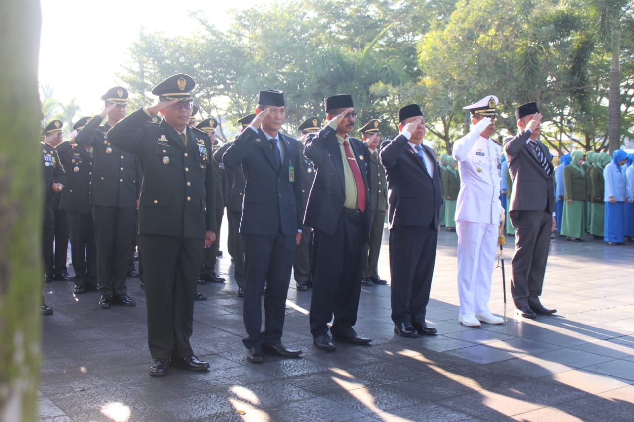 Ziarah Nasional dalam rangka rangkaian HUT Ke-80 TNI Tahun 2025 dengan tema ” TNI Prima, TNI Rakyat, Indonesia Maju” Sebagai Inspektur Upacara Kapolda Kep. Bangka Belitung Irjen Pol Hendro Pandowo, Komandan Upacara Kapten Laut (P) Yudianto Dankal Manau Lanal Babel dan Perwira Upacara Kapten Inf Ahmad Hasan.